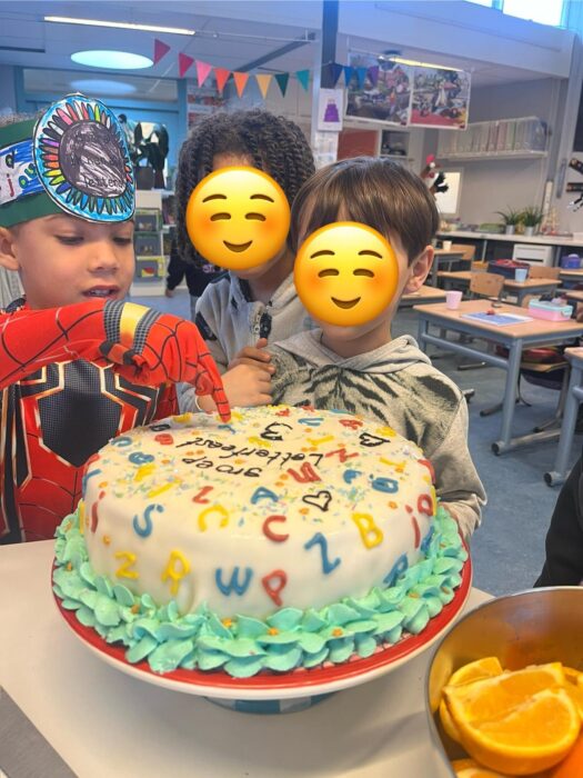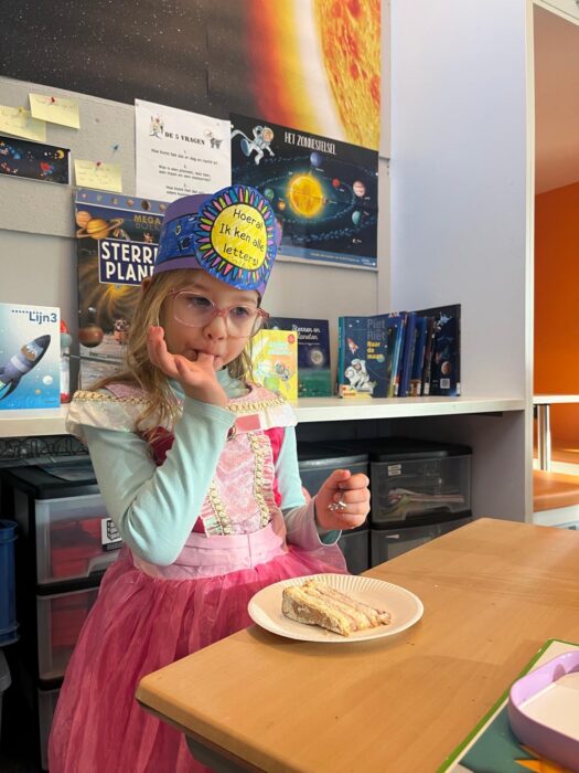 Alle letters op het letterbord zijn geleerd — een bijzondere mijlpaal voor de leerlingen van groep 3, en dat werd natuurlijk gevierd! Op vrijdag 23 januari was het feest op school. Er stond een heerlijke, prachtig versierde taart klaar en de kinderen mochten verkleed komen. Ze maakten zelf feestmutsen en vrolijke versieringen, waardoor de klas en middenruimte helemaal in feeststemming was. De ochtend stond in het teken van allerlei gezellige letter- en leesspelletjes. In de middag volgde het hoogtepunt: de diploma-uitreiking. Veel ouders, opa’s en oma’s waren aanwezig om dit moment samen met de kinderen te vieren. Het was een superleuke, feestelijke dag waar iedereen trots op kan terugkijken.